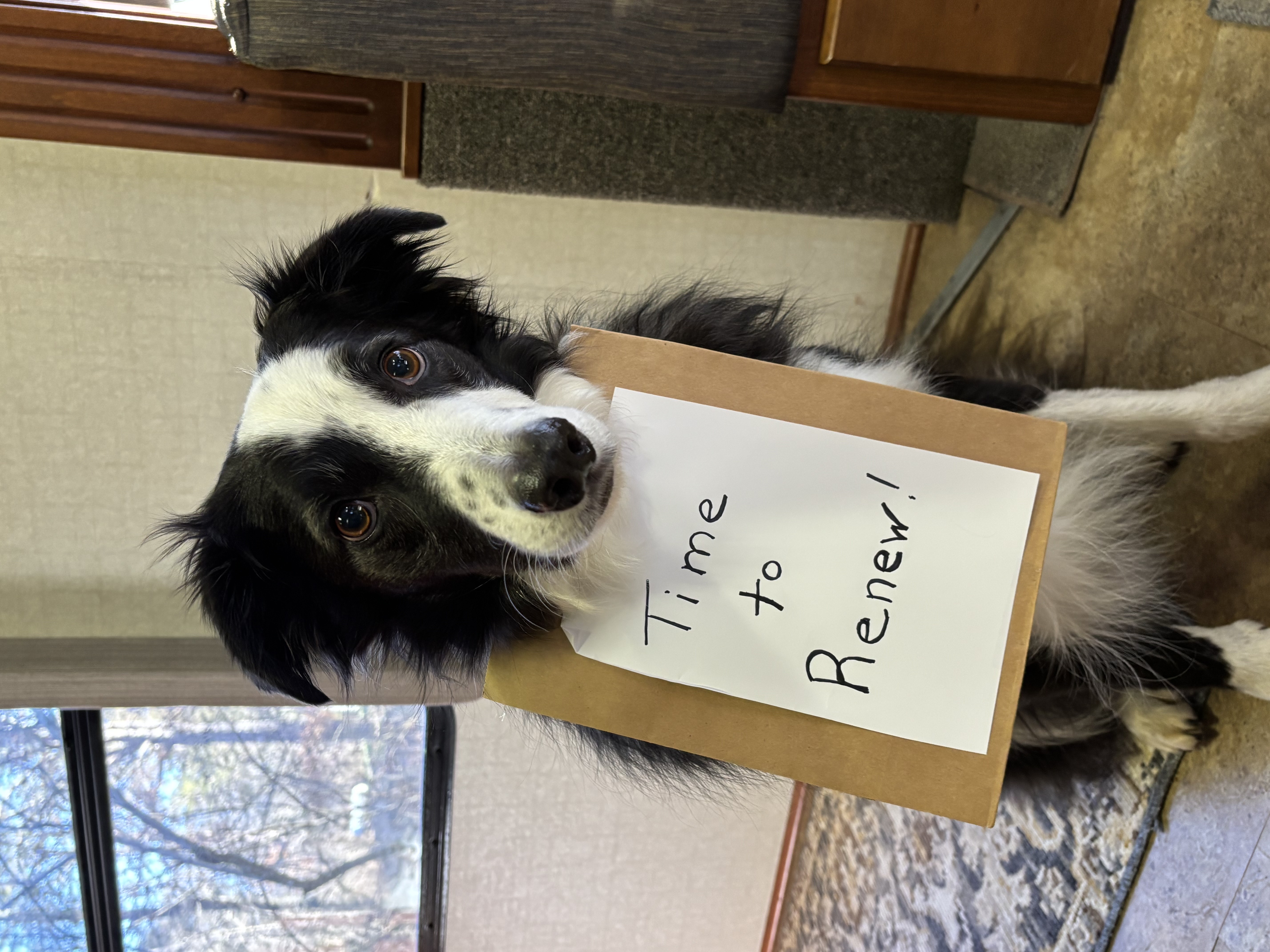Why the sign? He gets a biscuit every time someone renews their membership in the Rockland Yacht Club at rocklandyachtclub.org. Details are in your email inbox dated January 16th.